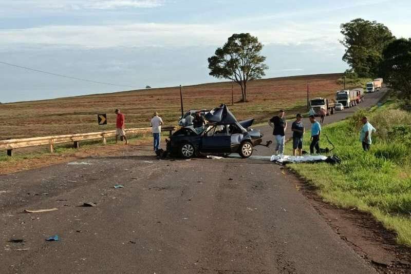 Carro fica retorcido após batida na BR-277 em Céu Azul; uma pessoa morreu