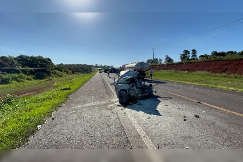 Acidente entre carro e caminhão deixa dois mortos na BR-376, em Ortigueira