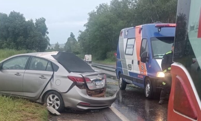 Segundo informações da Defesa Civil, elas estavam no banco traseiro de carro que foi atingido por um caminhão